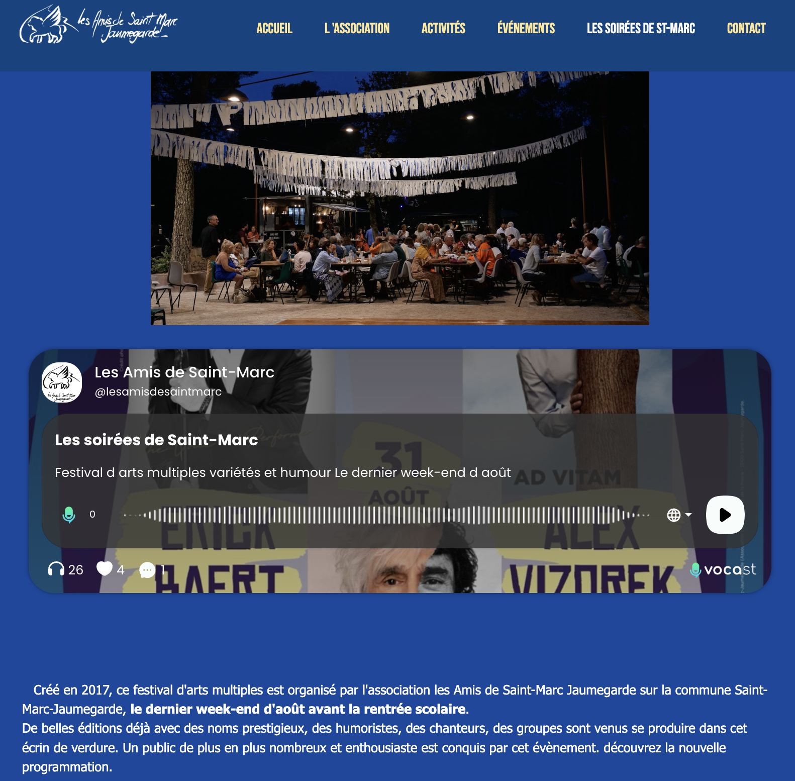 Pour chaque édition, l'équipe organisatrice enregistre des vocasts amusants où sont dévoilés les coulisses de l'évènement et les mini interviews des artistes présent·e·s. L'Association imprime les QR codes vocaux multi-langues sur les programmes du festival, permettant à chacun de profiter pleinement de l'esprit festif et chaleureux qui anime le village tout au long de l'événement.