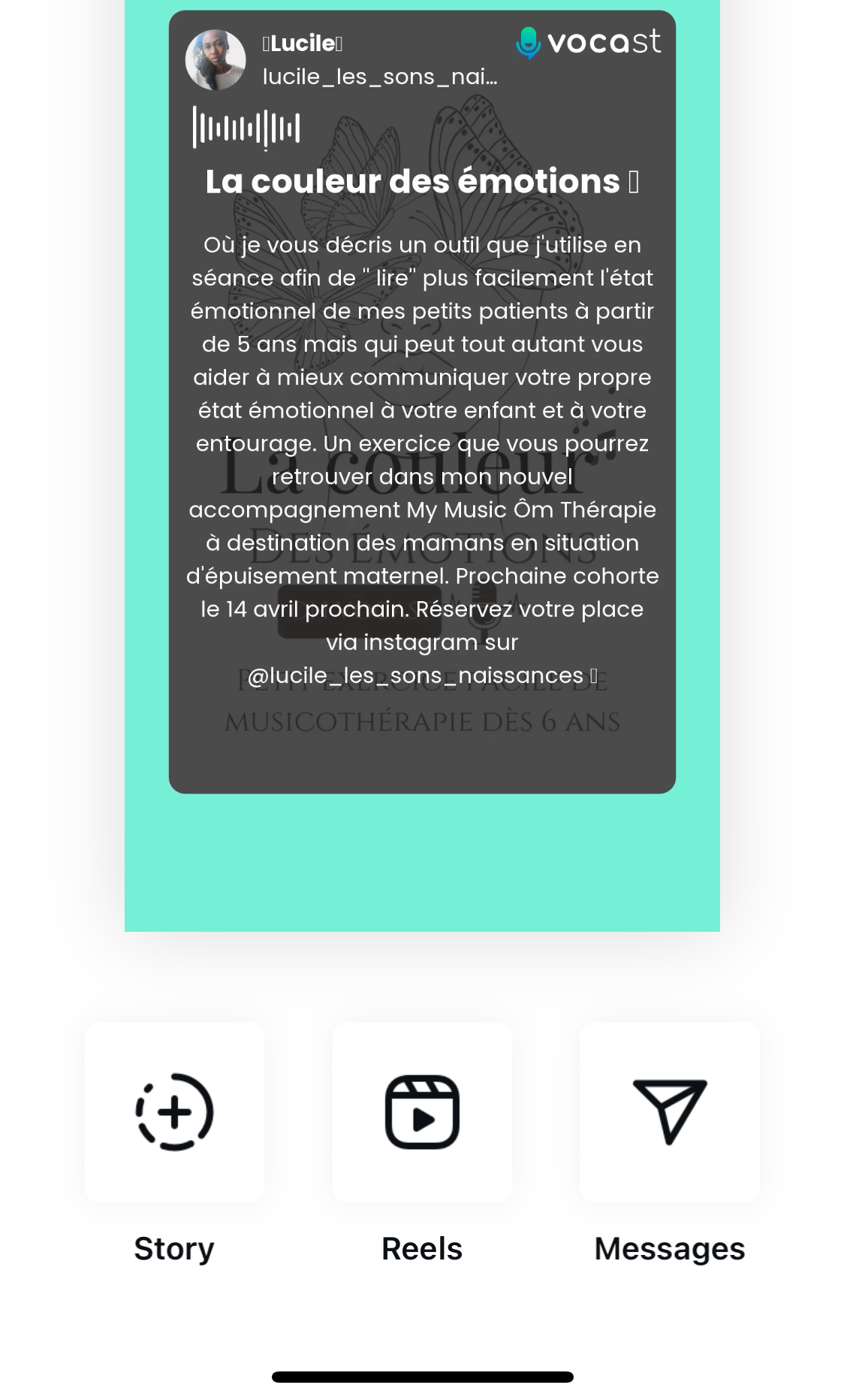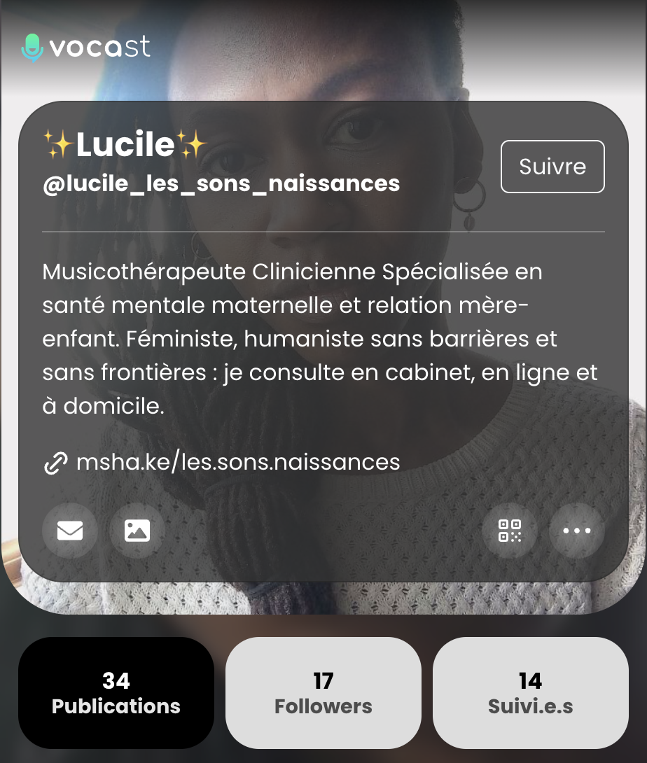 Lucile publie régulièrement des conseils audio et des anecdotes sur son quotidien de thérapeute sur son espace Vocast, elle les partage également sur ses réseaux sociaux afin d'alimenter son compte avec des nouveaux contenus.
